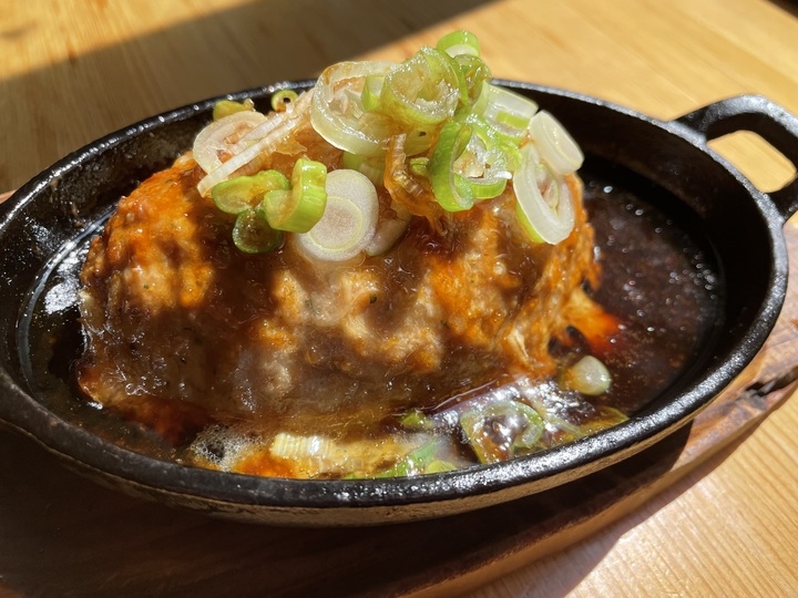 箸を入れた瞬間に肉汁が溢れ出す!熱々の鉄板で仕上げるジューシーなハンバーグ!