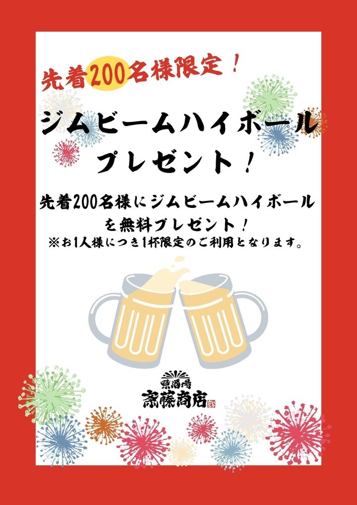 ジムビームハイボールお1人様につき1杯プレゼント!