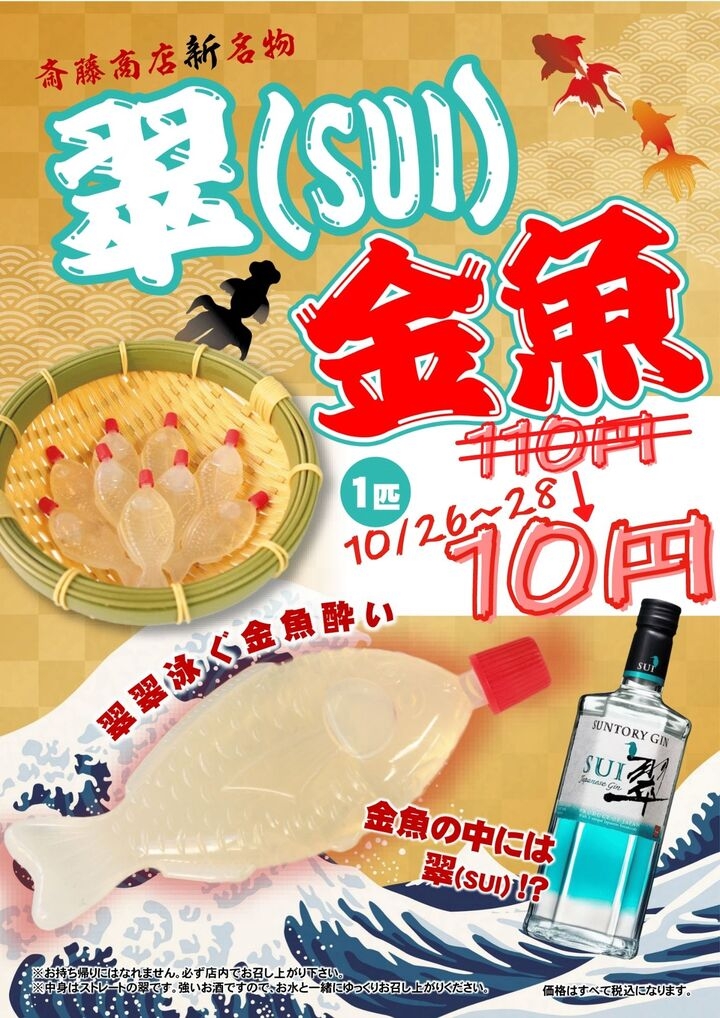さらに!今回の大感謝祭期間限定(10月26日〜28日)で通常110円の金魚翠が10円 (税込)に!!